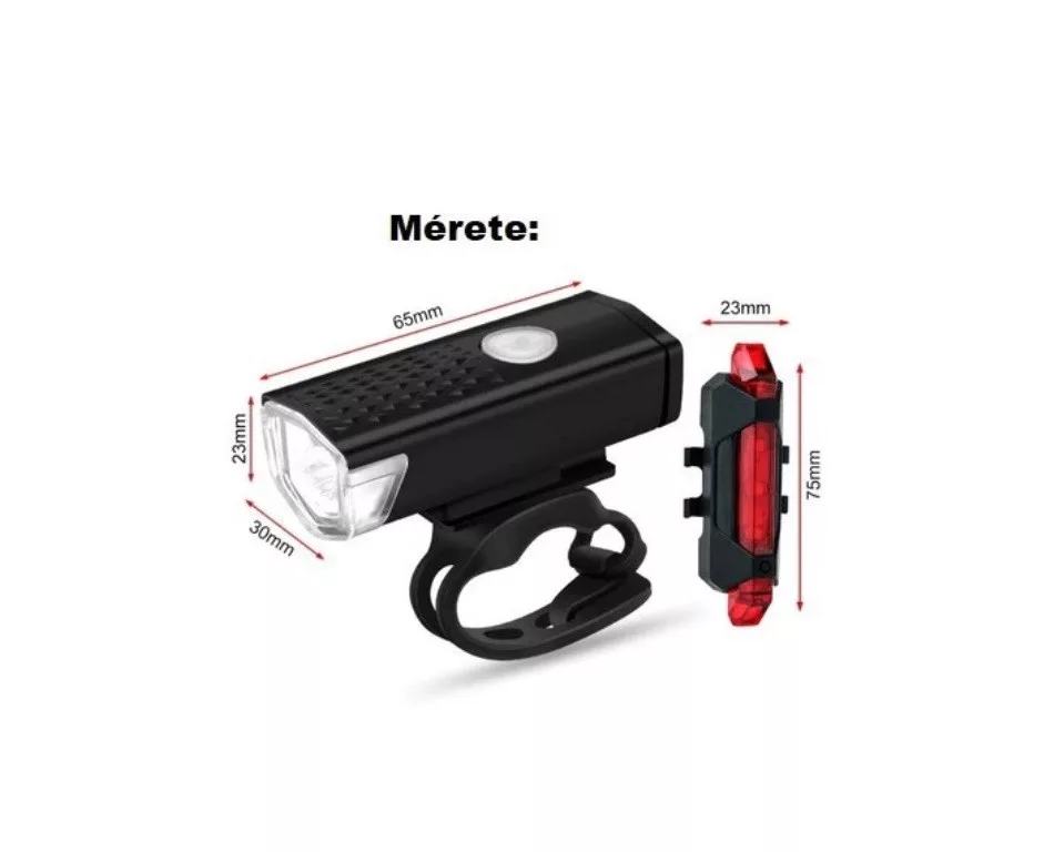 Lámpaszett usb tölthető fekete hátsólámpa piros fényű szögletes